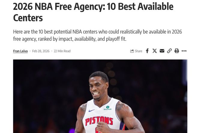 准备开抢!在常规赛进入冲刺阶段,美媒《fadeawayworld》提前评选出26年自由市场10大中锋,其中湖人艾顿第6,湖人心上人凯斯勒高居第二。